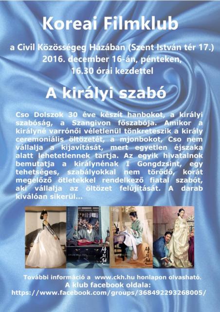 A királyi szabó (상의원; Szangivon; The Royal Tailor; 2014.) c. film vetítése.