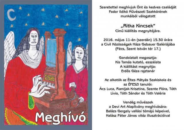 Szeretettek meghívjuk Önt és kedves családját Fodor Ildikó Művészeti Szakkörének munkáiból válogatott